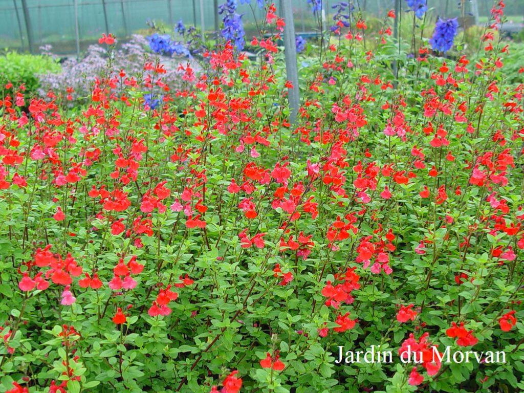 Centaines de petites fleurs rouge vermillon, de la fin mai à novembre. Parfum : groseillier.