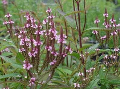 Je suis la cousine nord-américaine de la Verbena bonariensis n° 122, qui vient d'Amérique du Sud. Mes fleurs ne sont pas « pompons » mais épis. Je fleuris presque autant. J'aime le soleil mais ne déteste pas l'ombre légère. Je me ressème aussi. Et vis longtemps.